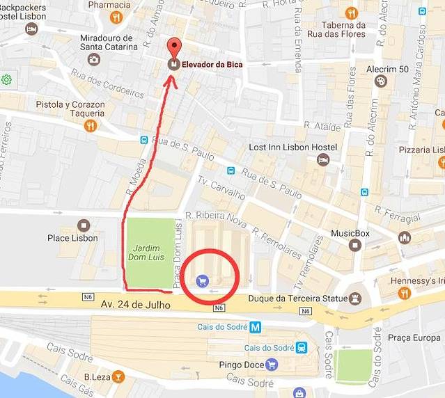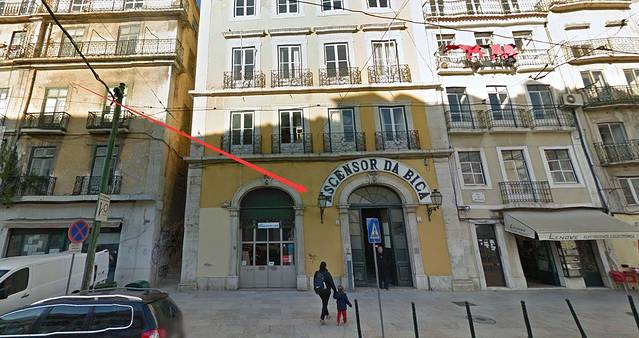 比卡升降机是葡萄牙首都里斯本的一条缆索铁路,连接圣保罗街和康普洛街。 比卡升降机从圣保罗街,沿 Rua da Bica de Duarte Belo街爬升245米。下站几乎隐藏在圣保罗街的一个立面的后面,上有铭文“Ascensor da Bica”。下面的这个入口很隐蔽,在路边大楼的门里面,注意找哦!
