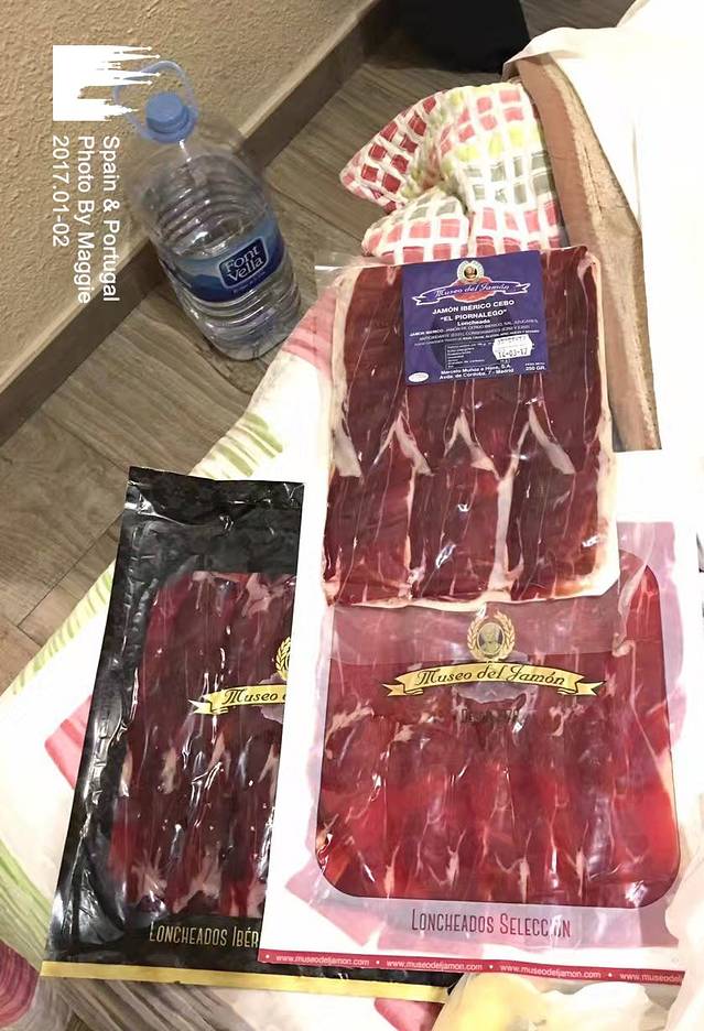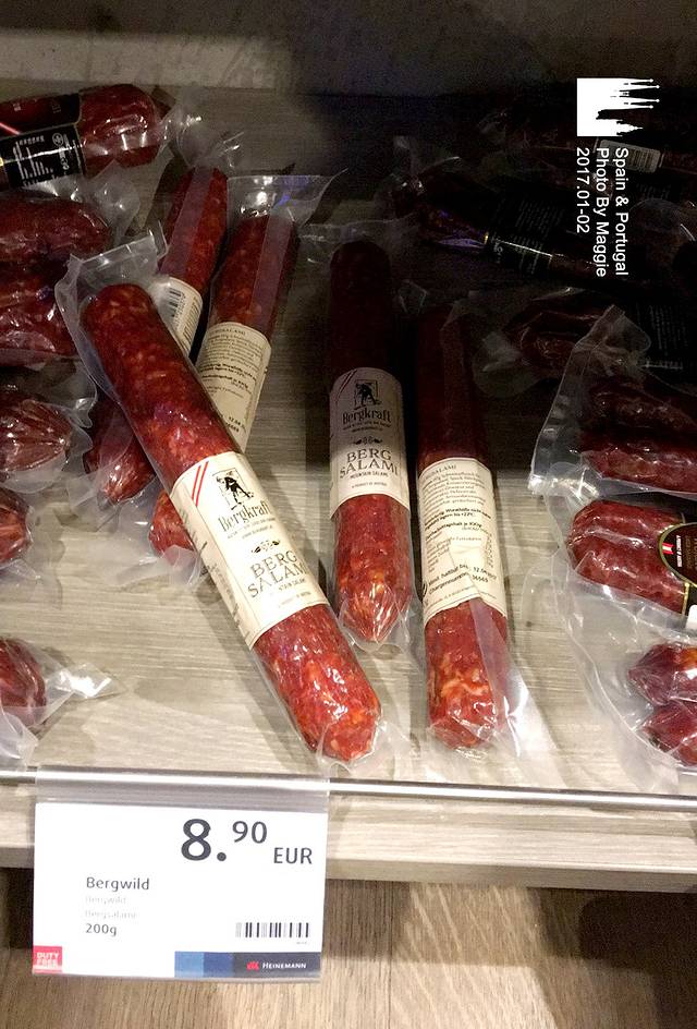 然后还买了2根葡萄牙的香肠,5欧元一根,巨难吃