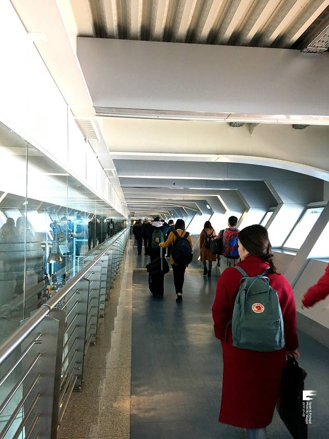 1. 我们从飞机上下来后,门口有个工作人员在指挥转机的乘客,我们询问她坐船怎么走,她告诉我们先走到E2闸口,那里有地方买船票。