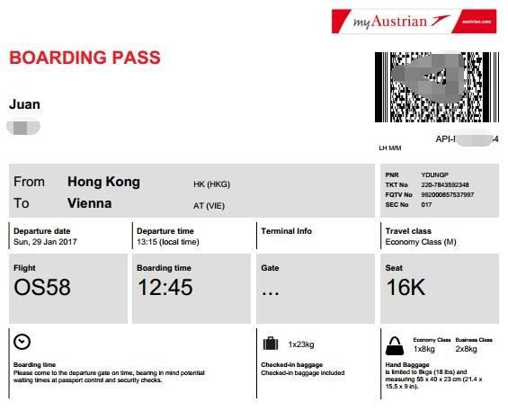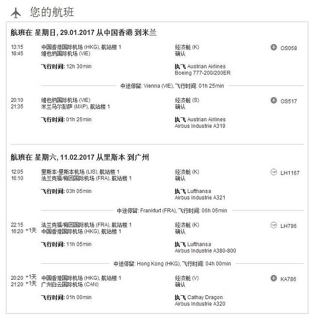 首先,刚刚从代理那里买好票,可代理给出的订单票号,只是他们网站的,为了验证客票的真实性,我先联系了汉莎中国客服。得知出发是奥地利航空执飞,回程是汉莎航空,但是都隶属于汉莎航空集团。