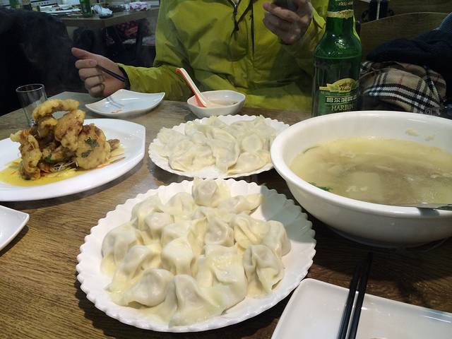 晚饭就是在青旅附近找了一家饺子馆。饺子真心便宜,14块钱一盘吧。在东北当然要吃酸菜,饺子也要吃酸菜馅的~哈哈~挺好吃的~