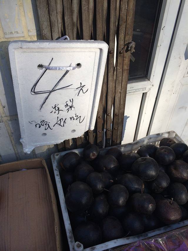 关于这边“嘎”“嘎嘎”大概是常用的副词,意思大概是“很”“非常”“very”这样子的。先是看到了卖“嘎嘎甜”橘子的(忘记拍照了),还有“嘎好吃”的冻梨、“嘎嘎香”的瓜子、“嘎嘎脆”的哑巴豆。