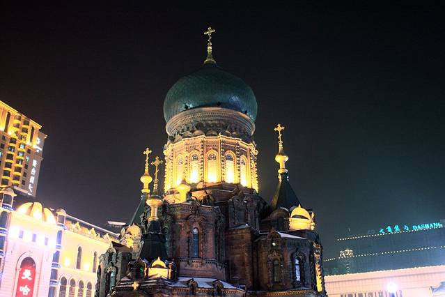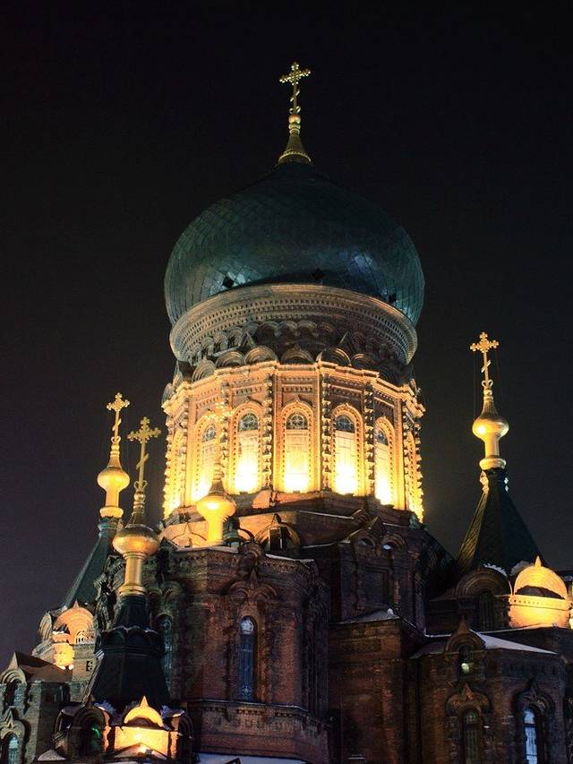 然后依次吃居家菜馆(下夹树街店),前往哈尔滨北方国际青旅入住,逛中央大街,在松花江光不刺溜的冰面上打出溜滑~看圣索菲亚大教堂夜景,回青旅。聊天,安排周日行程,睡觉。