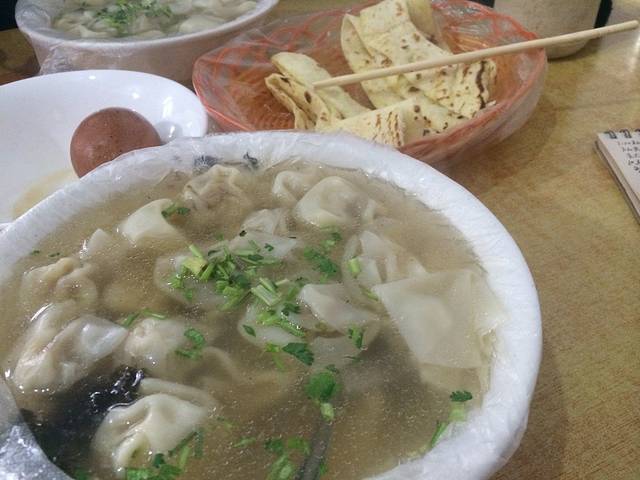 在早市吃的早饭,好大一碗馄饨,一个茶叶蛋,一张葱花饼,俩人花了15。馄饨量真的好大!