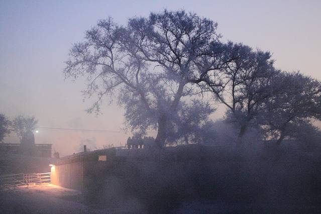 下了小巴很多去雾凇岛的黑车。大概6公里路程,基本就是20块钱一车的价格。所以可以在小巴上找人拼一下,不然他会要价10块/人。跟黑车司机说住在哪里,他会管送到门口。要是没有定住宿,他们也会推荐的。跟司机随便聊了聊得知,韩屯这边农家院大概开了40多家吧,接待能力还是很强的,除非元旦之类高峰期,一般不会找不到住宿。