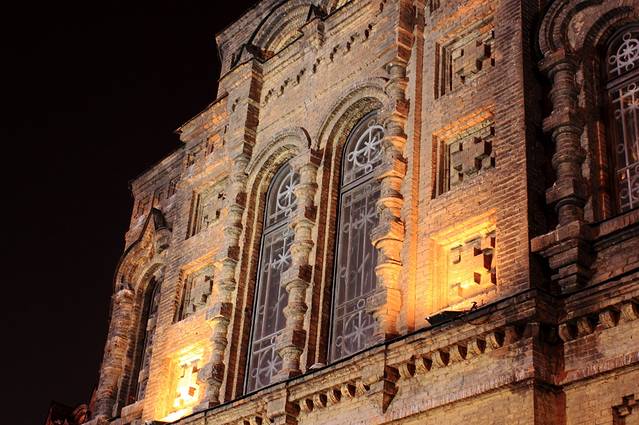 然后来到防洪纪念塔公交站,坐8路汽车到建筑艺术广场站,看夜景圣索菲亚大教堂。