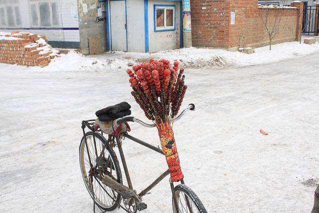 临在吃中午饭前,逛了一下韩屯,偶遇了那个有名的推自行车卖冰糖葫芦的老大爷。