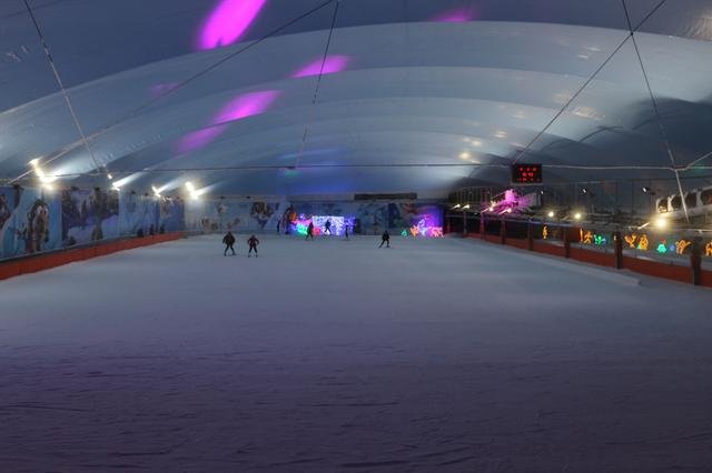 滑雪场滑雪面积超6000平方米,设有初级、中高级两条滑雪道。这座令人犹如置身蔚蓝天幕下的室内滑雪场,一亮相就以“高颜值”征服了大家,在雪地里肆意地撒欢,仿佛在冰雪王国中重返童年。在这里你可以尽情领略美丽童话般的冰雪世界,体验到滑雪运动带来的乐趣和快感。
