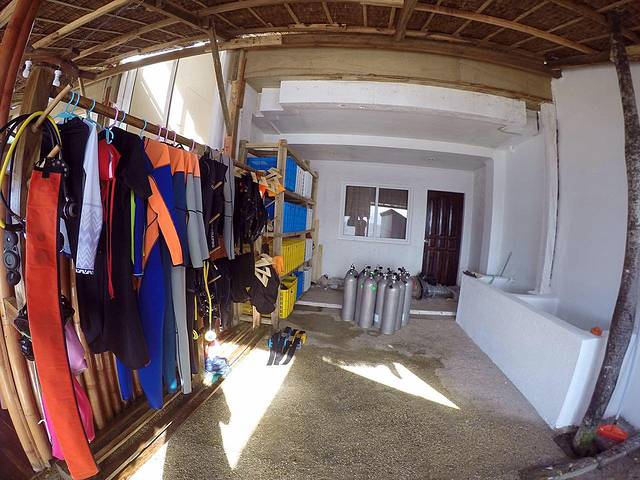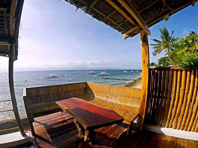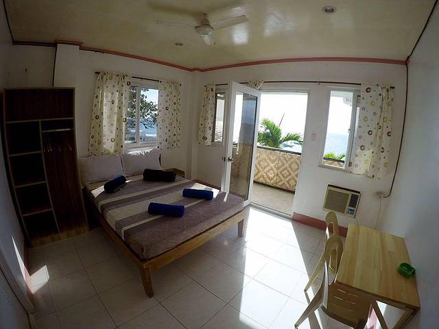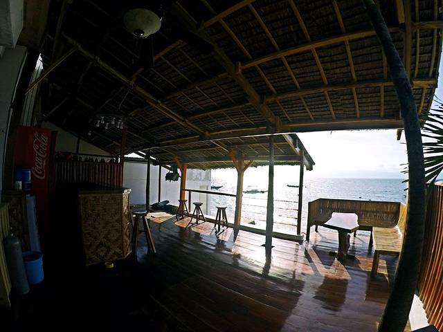 我们住宿的潜店,大名为“潜水主义墨宝店”,跟科隆的潜水主义是连锁。16年10月刚开张的,一共有四间大床房,两间上下铺,一间单人房,大床房有两间海景两间不靠海的。我们四人将他唯一的两间海景房包下来了,性价比极高。这间海景房是每晚1800披索,约合人民币260元左右。我想很适合来墨宝潜水的朋友们。