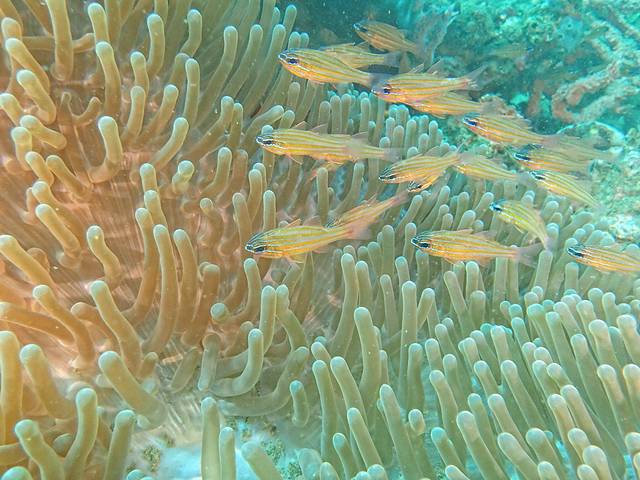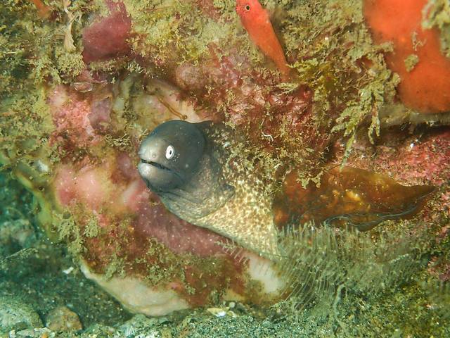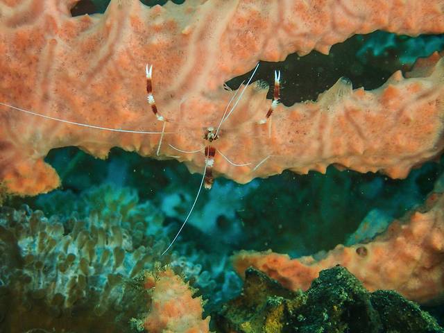第一潜去的是图中左下角的pescador island,那儿是个大峭壁。第二潜去的是tongo point,那儿主要看闪电贝,这两个潜点难度都不大,几乎没流,控制好中心就OK。刚开始么,还是以恢复为主。不过由于今年菲律宾南部的天气特别反常,低压云团特别多,三天两头都在下雨,我们到的时候下了一天的暴雨,导致海底能见度不咋地,所以我也没怎么拍。就那么几张,将就看看吧!