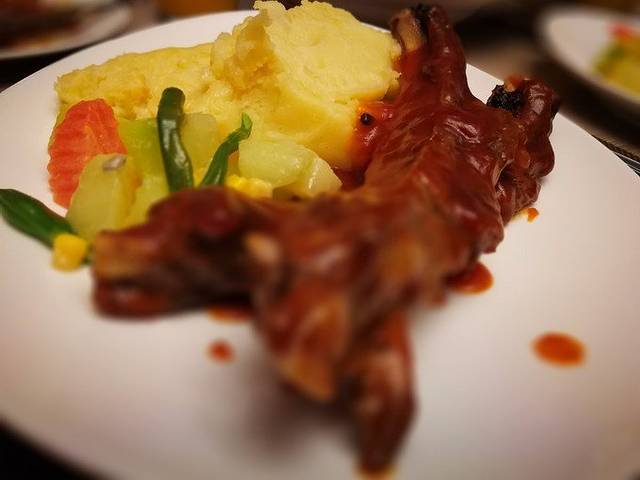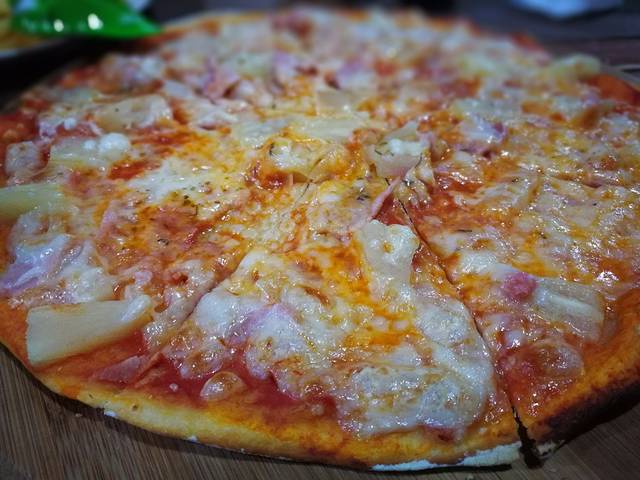 待两位学员结束课程,夜幕也降临了。若你过来接我们,一起去找了家菲律宾菜的餐馆。结果因为太饿了,忘记拍了其他菜,就拍了这个披萨……233333……