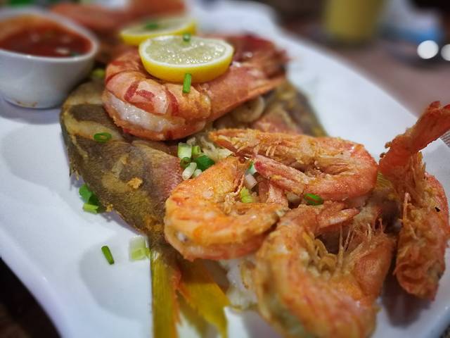 上岸之后,累得够呛,那必须得找家店好好补补。于是,我们又开始了美食搜捕。这次我们要再吃一次大餐,毕竟这是在墨宝的最后一晚上了嘛。于是找了一家临海的餐厅,感觉不错,而且价格超级便宜。