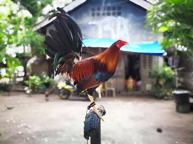 宿务这儿有斗鸡的习俗,几乎每家都养了几只斗鸡,每周都有固定的时间斗鸡。不过那几天我没去看,想过去应该也挺热闹非凡的。在潜店对面有户人家就养了好几只,随手用手机拍了张。