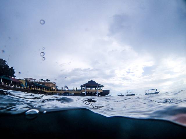 从道因的潜店出发,大约1小时多到达了奥斯洛布。这儿是杜马、宿务等岛观鲸鲨的一个点,主要是每天早上有附近巡游的鲸鲨来到这儿享受渔民们的喂食。虽然这一举动遭到动物保护的诟病,但可要知道当年这个镇的渔民大多以捕食鲸鲨为生,有了这个产业之后,渔民从捕食改为喂食,从一定程度上来说,也是一种对鲸鲨的保护。