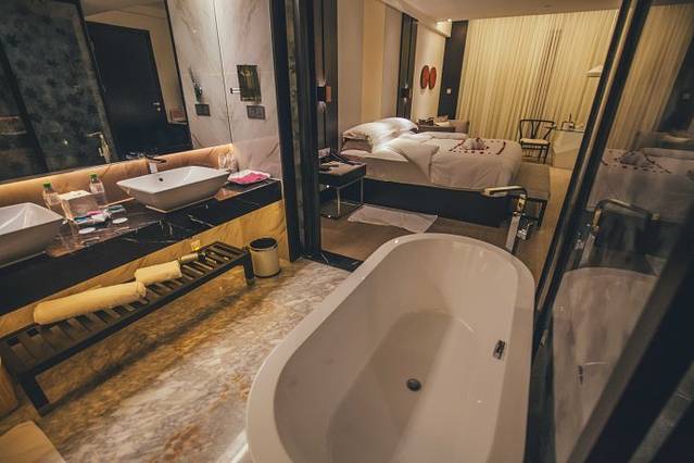 网上租车也是非常方便,临上飞机才下单租车,小车型起亚K2(小车型一般都不含倒车影像和倒车雷达,需要租车的同学们要注意提前确定这个关键的细节咯)价格100+/每天。(不含油费)租车师傅会把车开到宾馆的楼下交付,记得带好你的身份证、驾照和信用卡哦~服务态度都很好,还车的时候也是按时打电话预约时间来宾馆取车,第一次租车自驾游,so easy!游记部分航班晚点,到达三亚的时间已经接近晚上10点了,好在酒店的接送机师傅很准时的在机场等候我们,帮我们拎包上车,丝毫没有耽误一点时间。机场到亚龙湾的车程大概在40分钟左右。迎宾馆的每一间房都有无敌美好的景观位,夜晚更是美好的一塌糊涂。酒店的位置位于亚龙湾景区内,距离爱立方滨海公园和百花谷商业街都很近。步行就可以前往哦~