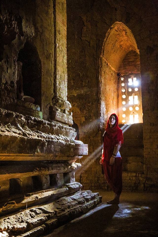 2.古彪基佛塔(Gubyaukgyi/Gubyauknge Temple (Wetkyl-in) 其实是一个塔群,江喜陀王时期建立。Gubyaukgyi以精美壁画闻名,此塔颂赞着佛祖五百五十轮回的动人事迹。Gubyauknge是另一个小塔,登上去有个平台能看到周围的佛塔。而wetkyi-in应该是在村子更深处的一座塔(存疑,因为当时没有问清,现在也不是很确定此处属于gbyaukgyi塔群的范围),用Google map找不到,多问问当地人,他们会指方向,在一个比较偏僻的地方。这儿傍晚有天然的丁达尔效应,非常美。旁边有看守佛塔的人家,可以去请他们开门。
