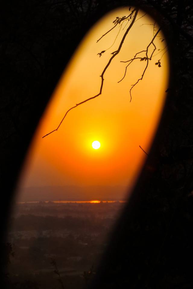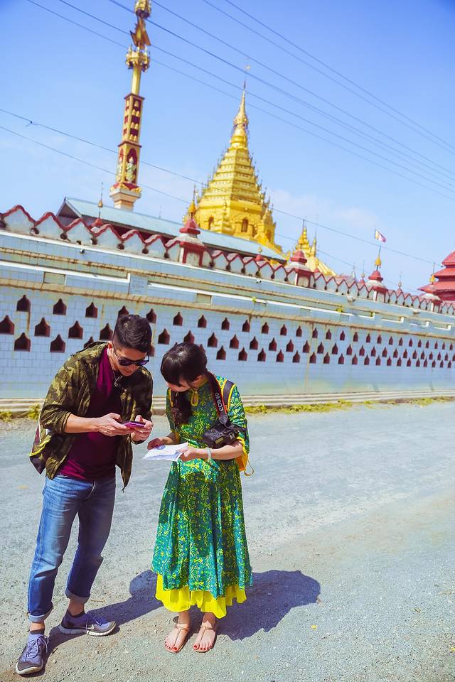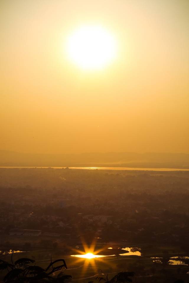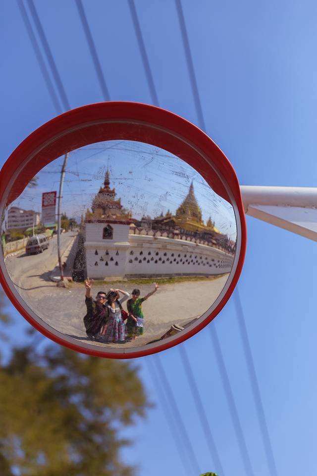 山顶的寺庙琉璃很美。不过观日落的人有点多,我们下来在半山腰路边看的,安安静静地一起享受在曼德勒的最后时光。