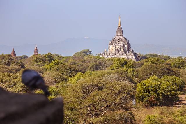 Bulethi上方看到的这个仿古建筑是缅甸政府修建的Nan Myint观光塔,建造时遭到联合国教科文组织和世界各地游客的激烈反对,缅甸政府解释说这是为了减少游客攀爬佛塔,目的是保护古迹。塔的顶部已经经过了装饰处理,感觉跟周围的环境并不违和。