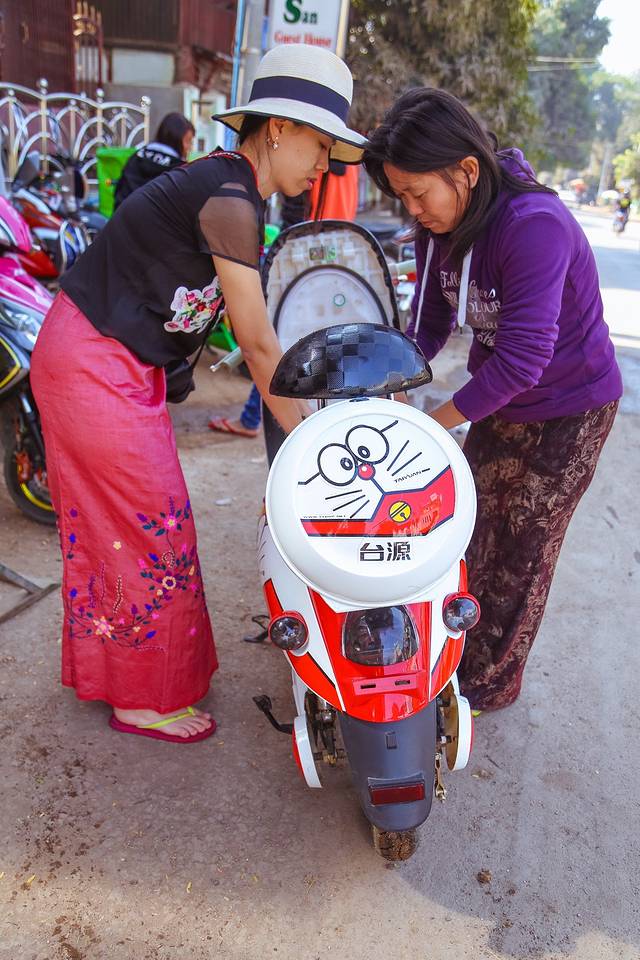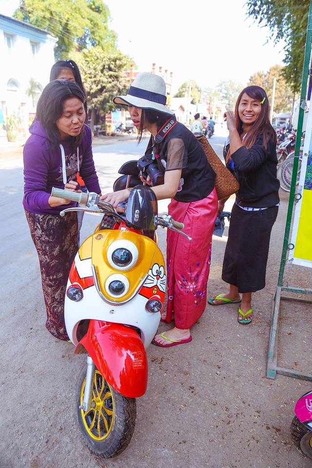 回来租老板娘的小电动去玩,费用 8000k 每天。民宿位于娘乌镇,开到旧蒲甘也就十几分钟,还是很方便的。半天来回的话电池管够(一天就别想了,保你挂在路上),还能吃吃饭,午休一下,下午太阳没那么大再出去。