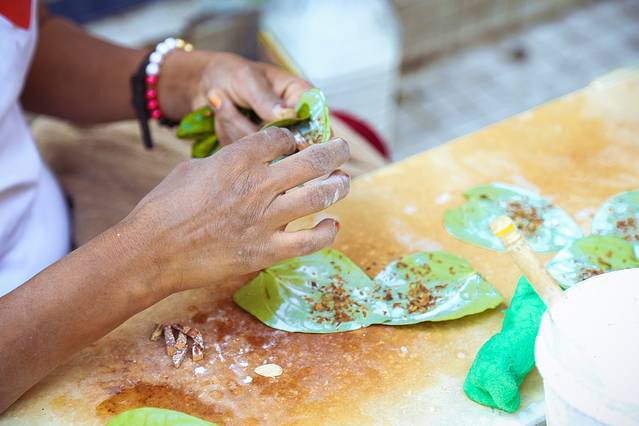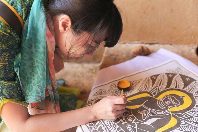 马哈菩提佛塔(Mahabodhi Temple)边上有位卖特纳卡的大姐,手艺非常好,也特别会卖东西,为了推销给我们都画了很正宗的叶子图案,套路有点深(−_−;)。