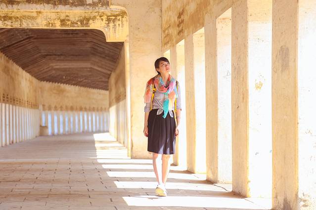 嫌帽子热又不好搭,带条百搭的丝巾,又能遮阳又好看,最重要的是,能挡灰!缅甸灰实在太大了,不带口罩的话至少带条丝巾挡啊,不然得吃够几斤灰回来。