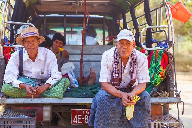 与小tai、日本老奶奶(另一位住客)和老板一一道别后我们坐上了去仰光的bus,bus票是老板代买的,11刀。