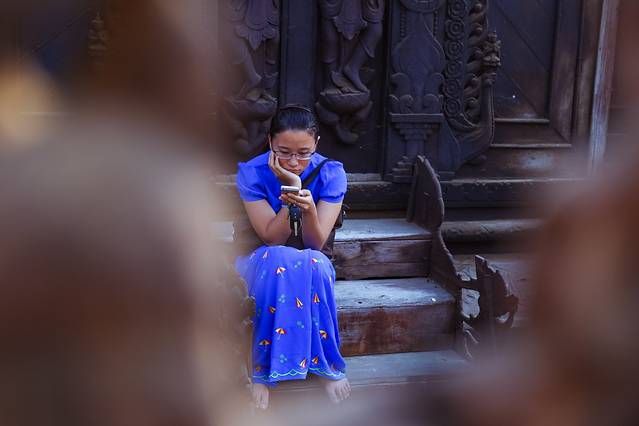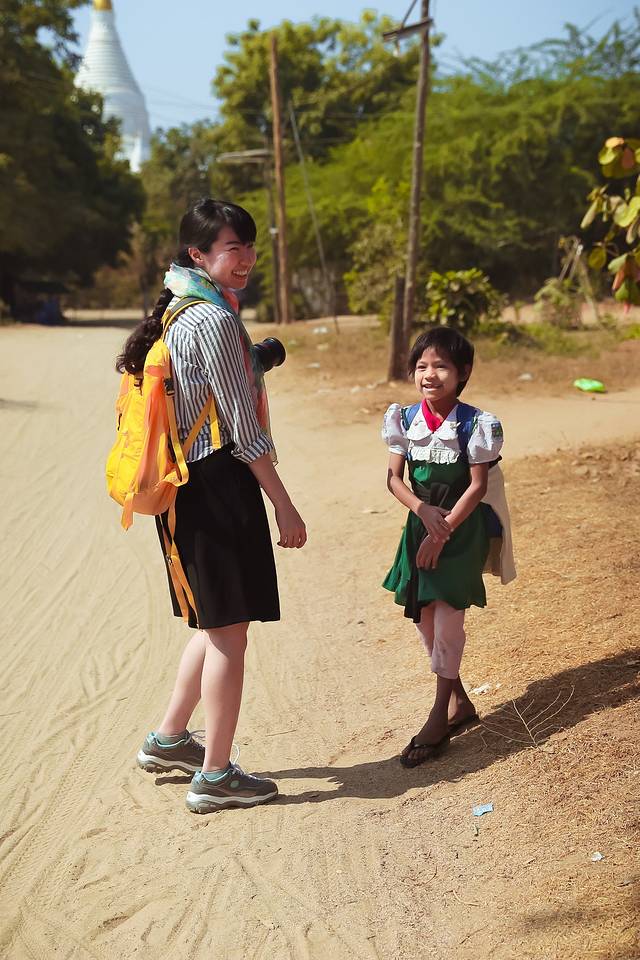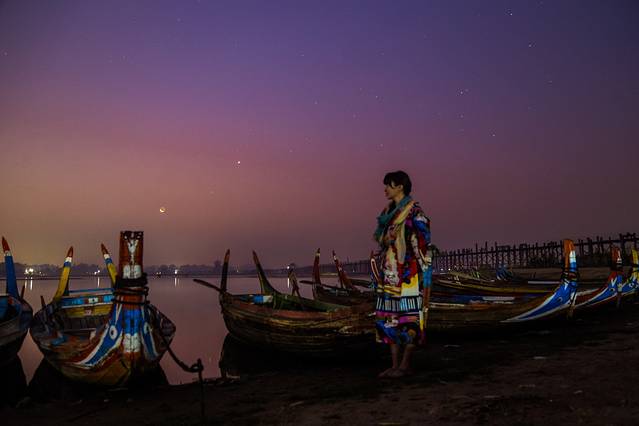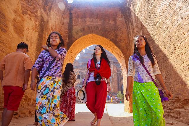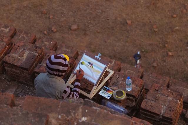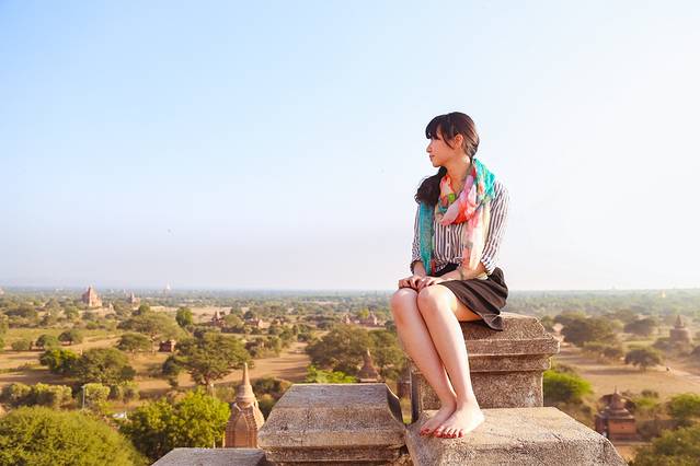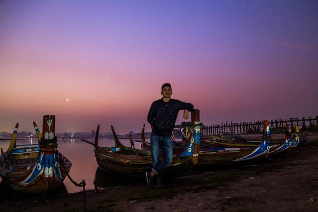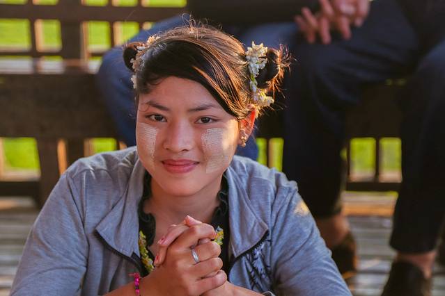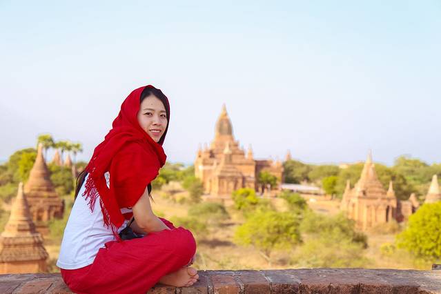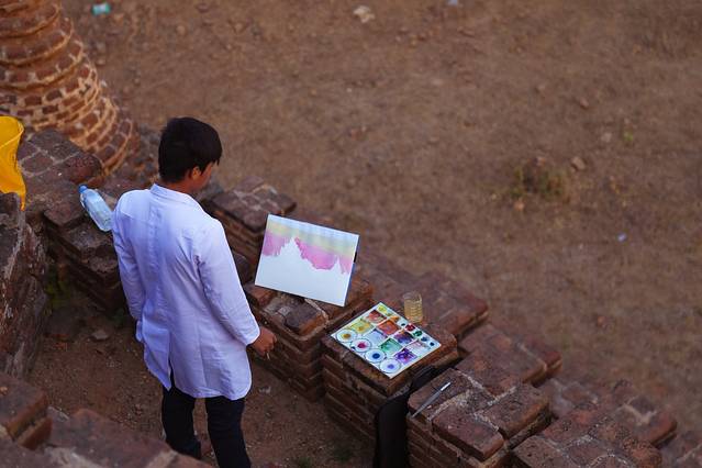 Bulethi看日落的人不少,我身边坐着一个韩国来的妹子,她不说话我都以为是当地人,穿着特敏涂着特纳卡,长得也挺像,她说她昨天才到缅甸,我表示她的伪装非常成功。