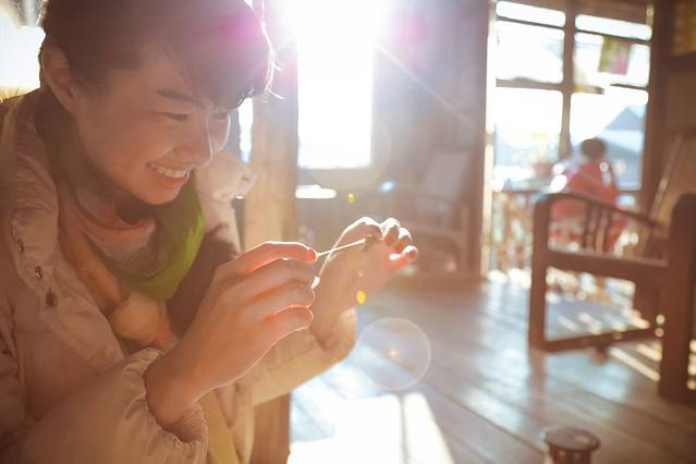 回旅馆等相机充电时顺便跟老板娘坐在门口聊天。