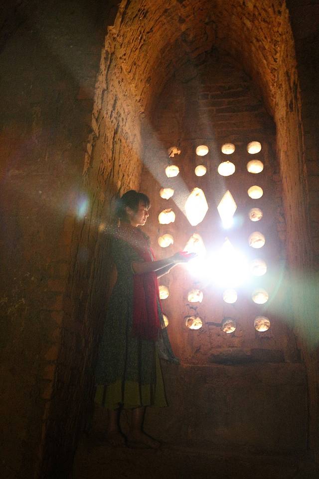 而我认为的Wetkyi-in应该是在村子更深处的一座塔(存疑,没有找到能对的上的图),用Google map找不到,多问问当地人,他们会指方向,在一个比较偏僻的地方。这里傍晚有天然的丁达尔效应,非常美。旁边有看守佛塔的人家,可以去请他们开门。