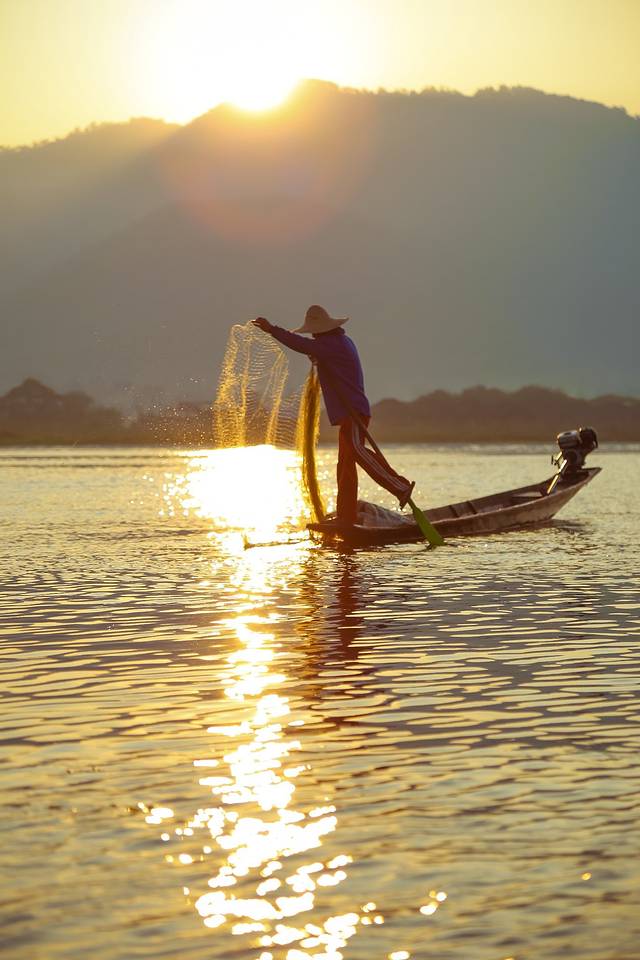 茵莱湖真正的单脚捕鱼要在清晨才能看到,其他时间可能只有表演性质的竹篓单脚捕鱼。竹篓是古代捕鱼的工具,现在为了观赏性改良过了,目前茵莱湖的渔民主要使用渔网捕鱼。如果要拍竹篓捕鱼早上也能遇到,需要给小费,跟船夫说好不拍竹篓的他就不会划过去。