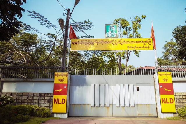 出来以后我们又坐了一趟火车去原来的车站(我忘记为什么会有这么曲折的行程了……),然后打车去昂山素季的住所。出租车司机的英文一般都不大好,跟他们说Mama’s house就知道地方了。路过Inya lake(茵雅湖),实在太热了就没下来走,安慰自己说,跟芙蓉湖看起来也差不多嘛。