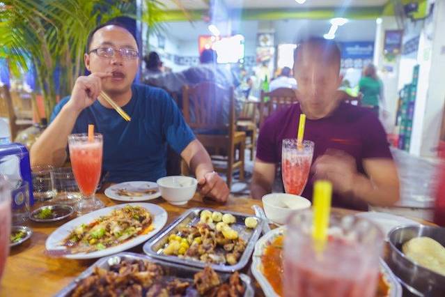 回旅馆捡到了摄影大神蓝牙大哥跟我们一起去吃“年夜饭”,本来打算去当地烧烤摊感受一下气氛的我们,却意外地被地图引到了中国云南人开的麻辣烫摊,烤鱼还不错。小老板才19岁好帅。回来一搜,啊原来人家烧烤摊就叫云南……(应该是这家没错),不能怪地图……
