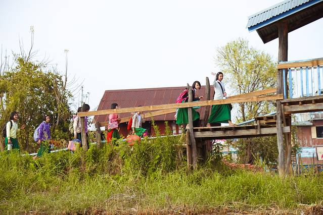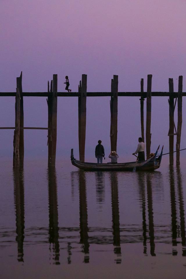 接着去了茵丹古城佛塔(Shwe Inn Dein Pagoda),路上的风景是最美的。船在芦苇丛里穿梭,或是经过一个木桥,路过一个浮村,岸上的人们时不时跟你打个招呼,只希望这条路越长越好。