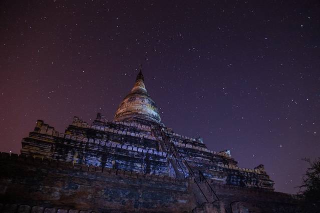 3.瑞来陀塔(Shwe-Leik-Too Paya)这个塔之前看到有人推荐看日出,楼梯有点险,半夜会很难爬,不是很建议在这儿看日出。日落的话位置不对。塔本身非常美,推荐去看看。
