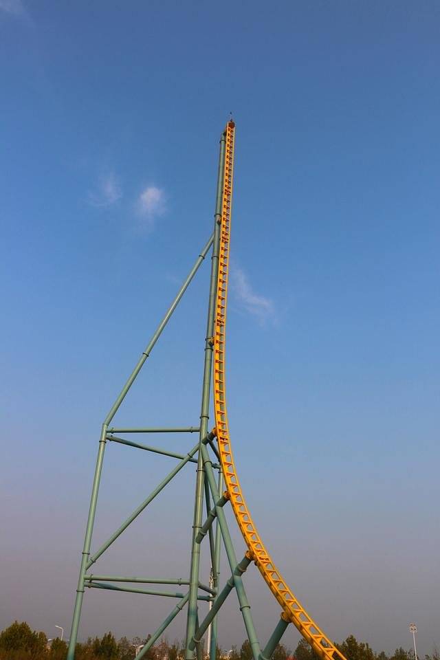 还有个就是中国首台断裂式双轨过山车,绝对是一种心理的挑战!中国首台相向对发式双轨过山车,享有过山车之王的美誉。两套列车同时提升至轨道顶点,通过独特的断轨翻转技术同时翻转,以大于70公里的时速一起俯冲。坐在过山车上的你即使害怕也要忍住咆哮,因为龙虎相逢,勇者胜!
