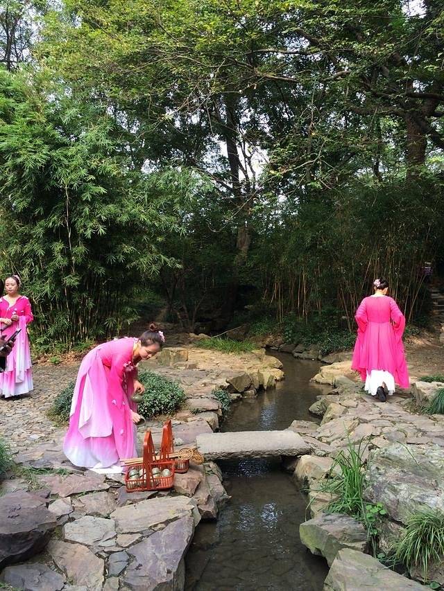 吃完饭,可以到沈园观看一下演出,很巧的是,刚好赶上了绍兴乌篷船风情月开幕式,欣赏了一场精彩的越剧表演。越剧起源于绍兴。越剧长于抒情,以唱为主,声腔清悠婉丽,优美动听,表演真切动人,极具江南地方色彩。