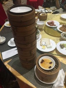 客车一到酒店门口,就有服务员出来给每个客人派发手巾擦手。