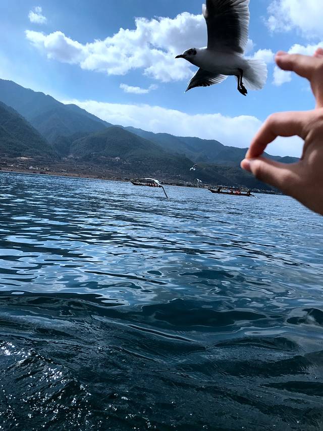 泸沽湖里边的水特别清,用清澈见底来形容一点不为过,这里的孩子很淳朴。随手一拍,就可以做背景来用。可以买一些面包,喂海鸥,他们多高都能接住的哦