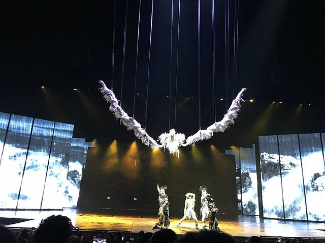 茶马古道演出,当这个鹰(其实是人组成的)下来的时候。太震撼了