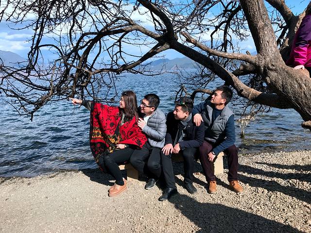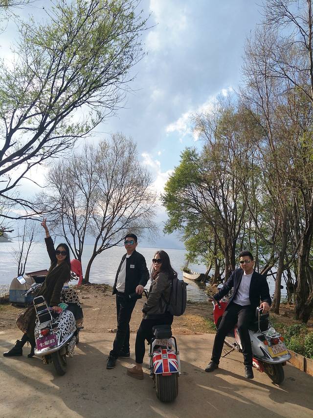 直接坐前一天安排的大巴车去了双廊,有车直接来酒店接的。因为双廊在修路,所以需要坐一段电瓶车,这个费用都包含过了。来这里,大多会住海景房,但是挺贵的哦,今天我们的小队伍壮大了,因为有了阿姨和小任同学,一路上说说笑笑,各种拍照,我们是租的电瓶车,一个是40,特别拉风,环着洱海兜风,途中还有拍婚纱照的,我们是到了挖色往回返城。晚上我们随便逛了逛,去了玉几岛,杨丽萍旧居。一起吃个饭。提前定好第二天去丽江的大巴,一个人90。