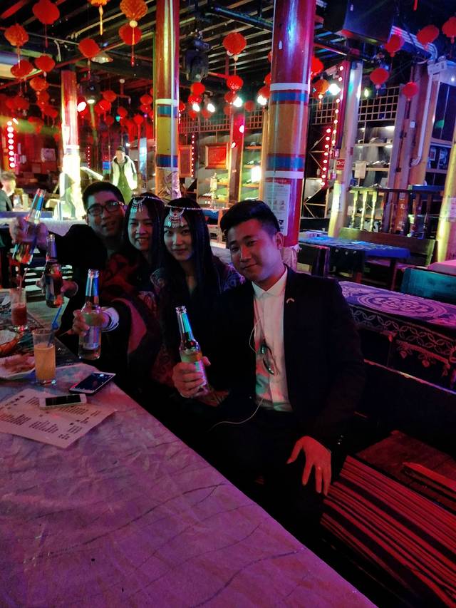 晚上几个人浩浩荡荡的来古城逛夜景了,需要注意的是,古城晚上不收维修费,而且很热闹。丽江古城真的是让人走在大街上就很有浪漫的感觉,有种不自觉的放慢节奏想要慢下来点;有人说:在丽江,最美的是时光,最不值钱的是时间,果真如此呀!在丽江有的不只是艳遇“,还有很多历史文化底蕴。最开心的是我们在酒吧街,去了“一米阳光”清吧,很有情调,晚上的酒吧街特别热闹,几个伙伴在我们入住酒店的老板带领下,真的便宜很多。最难忘的是,某人还给我献唱一首,特别感动。