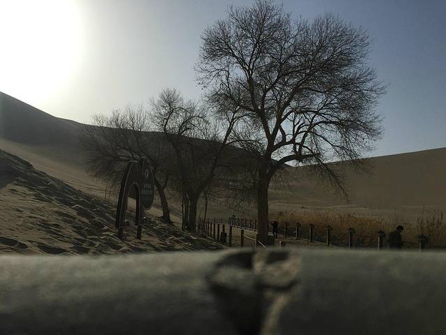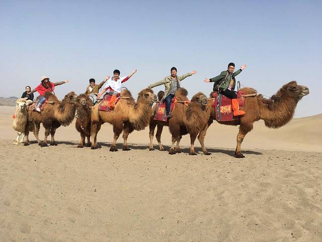 差不多2点多到了鸣沙山,路线可以先骑骆驼,下来后在去看月牙泉近景,然后再爬到沙漠上看远景还有日落。这是下午到达鸣沙山的最佳观景顺利!