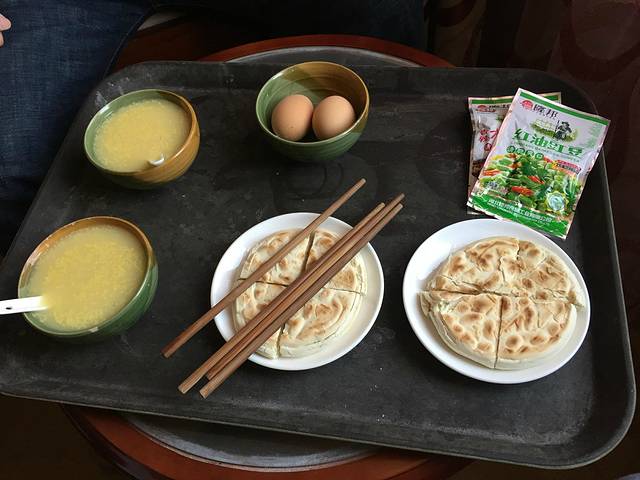 我对小哥我们早餐只吃粥,哈,带我们去敦煌最好吃的粥,接下去我们三个早上都寄在这里了,在外面我还是喜欢吃淡餐,不辣不酸,怕吃坏肚子。小哥就带我们去莫高窟,开始了我们的旅程!