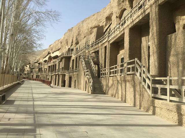 莫高窟的路线是先在收费处大厅中看两部宣传介绍,一个是历史宣传片还有另外一个5D效果重点窟的介绍,然后做环保车到莫高窟,大概路程10分钟,然后到那边分组,先到先分,一组一个讲解员带你们走完有开放的窟,每个窟都是锁着的,你没讲解员带,你也看不到的,所以这个讲解完跟玩完,你如果还想看的,就可以跑到后面去跟新的组团。然后回去售票处也要做环保车。那天那个包车小哥说你们怎么玩的,莫高窟也能让你们玩三个小时,哈哈