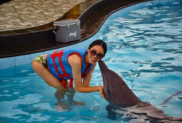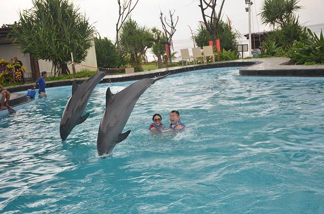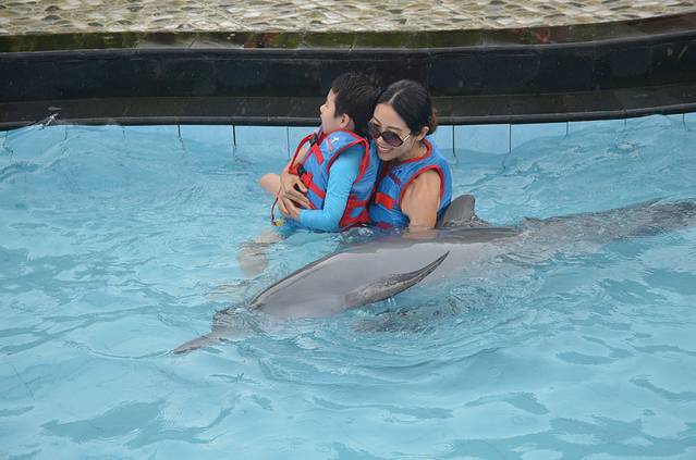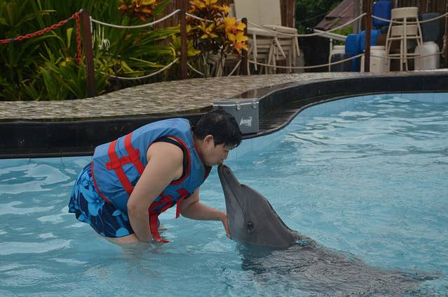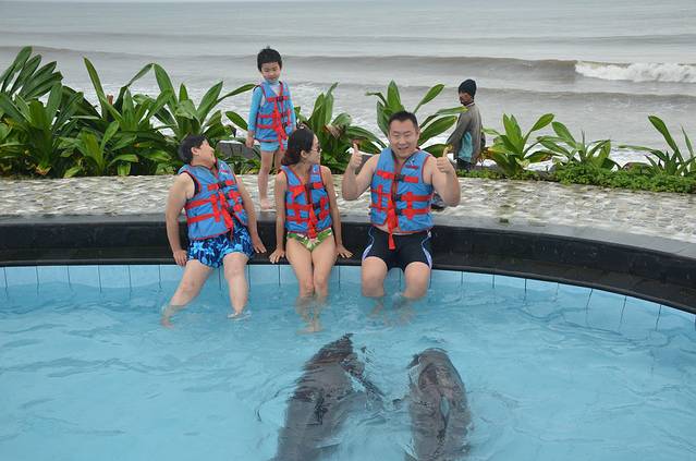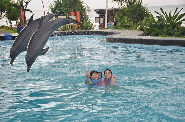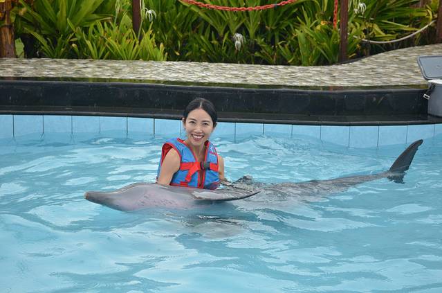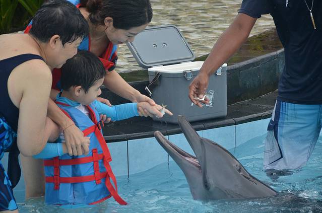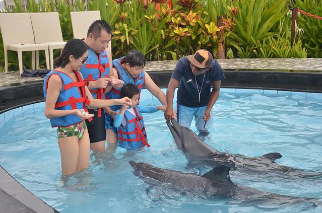 下午去的海豚中心,是一个小朋友和海豚亲密接触的过程。这个海豚中心需要提前预定,在一个小时之内只接待一个家庭。小朋友从最初的还怕,到后来念念不忘。