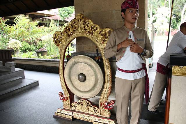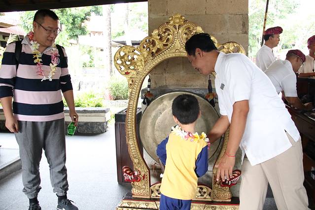 巴厘岛酒店都有这个钟,每当有客人来的时候就敲击一下,当做是欢迎仪式。小朋友很喜欢