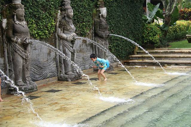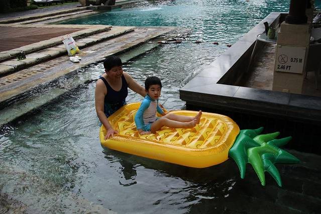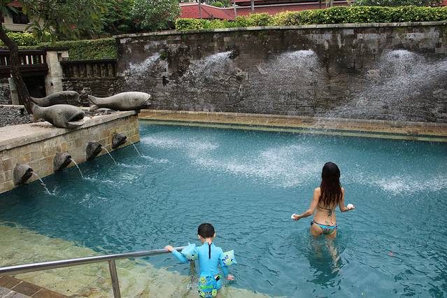 巴厘岛洲际给我印象最深还是他的当地风情建筑与现代化的结合。作为度假地,泳池是一个特别明显的标志。巴厘岛洲际有6个泳池,一直到现在我儿子都认为巴厘岛是最好的地方,因为有6个泳池可以选择。