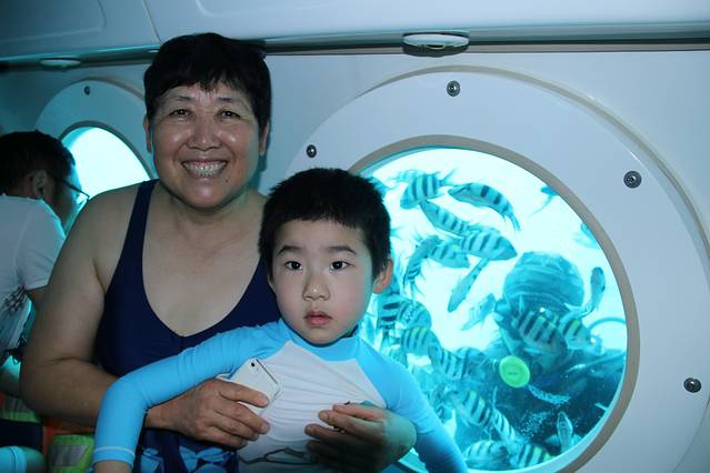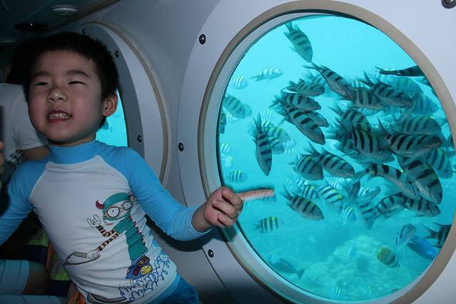 这个项目其实是一个一日游,先乘坐潜水艇到海底,小朋友也可以看到海底生物。小朋友超级兴奋。