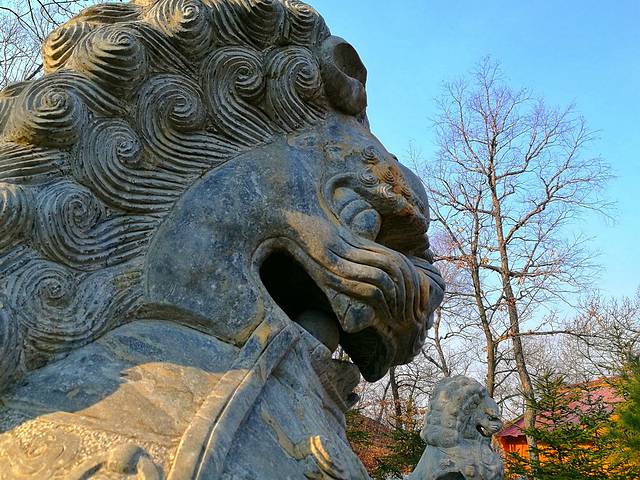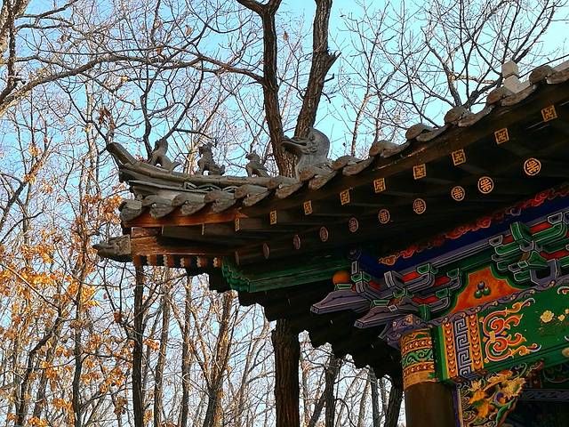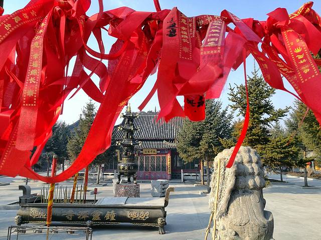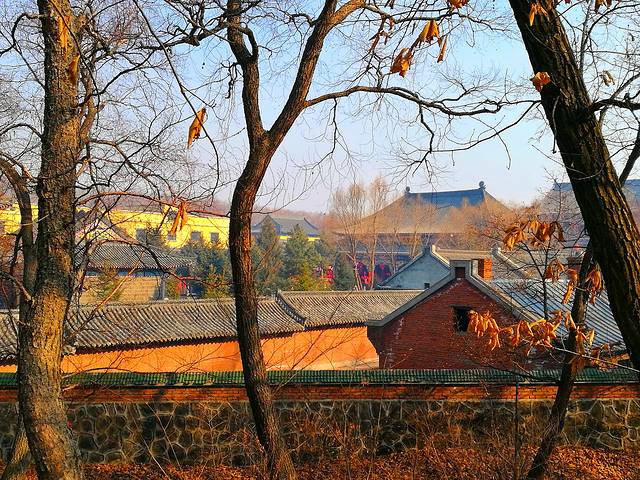 枝繁根深的大树,金碧辉煌的寺院,构成一道风景线,奇美的自然风光、高大雄伟的建筑物浑然一体,这倒是一处塞北难以寻觅的佛境。