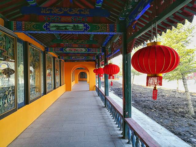 寺内建有游廊,左侧游廊墙壁上悬挂着木雕作品,做工精致,刀法细腻的观世音菩萨;右侧游廊也是木刻作品,是劝人向善的故事。